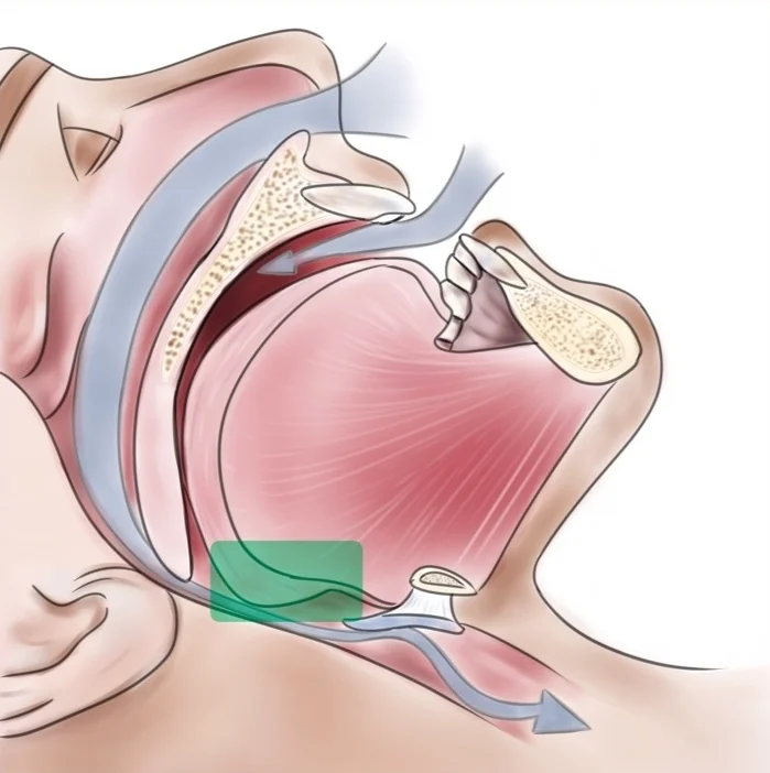 The tongue base, connected to the epiglottis and the larynx, is the main cause of airway obstruction and difficult intubation. Moving the tongue base anteriorly without changing the mouth’s overall anatomy is the easiest and most reliable method of opening the airway. Doing so also keeps the larynx in the midline of the mouth and pulls the larynx toward the mouth slightly, both of which facilitate successful intubation.